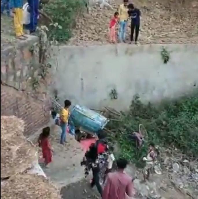 आइसक्रीम विक्रेता पुलिया से ट्रॉली समेत नीचे गिरा हुआ जख्मी