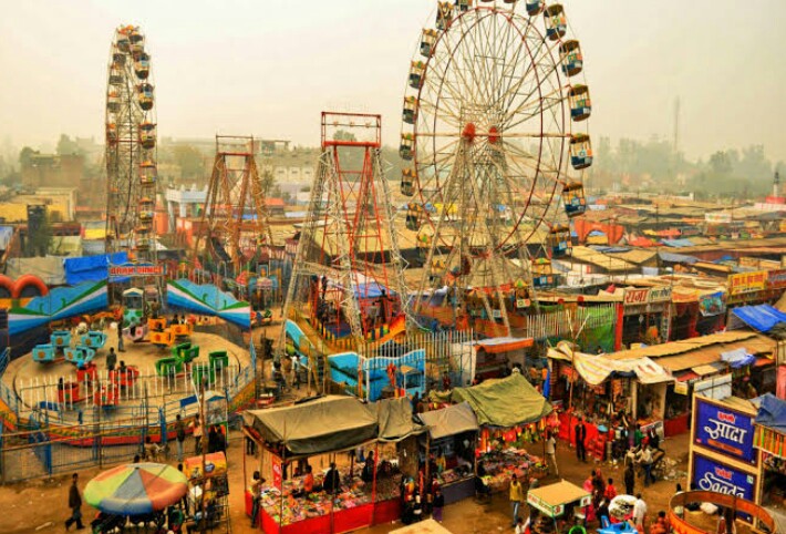 मेले में उमड़ रही भीड़ झूले का आनंद ले रहे हैं
