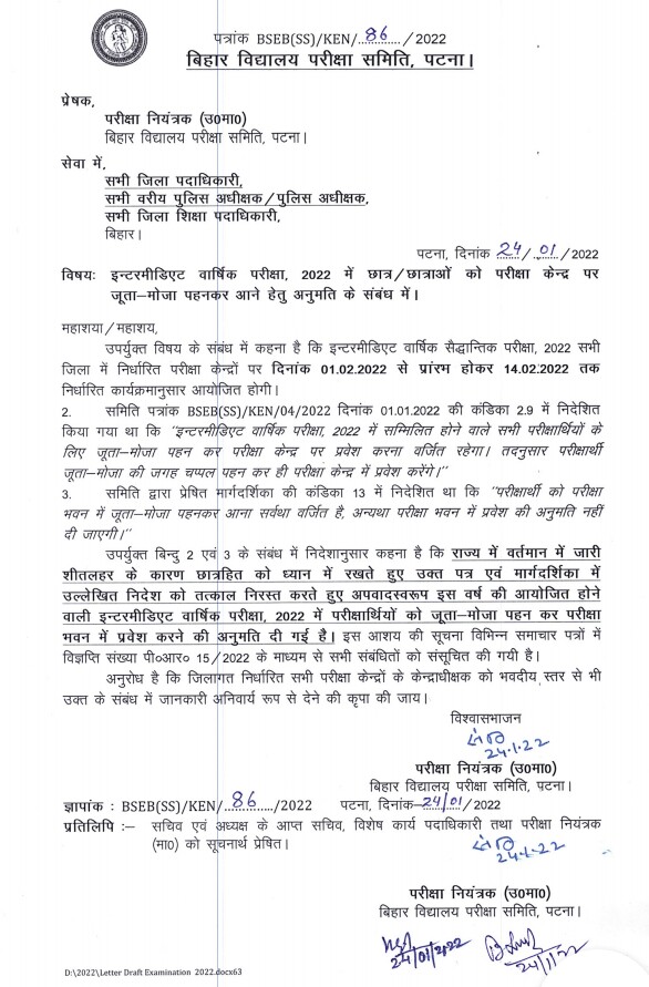अब जूता मोजा पहन कर परीक्षा दे सकेंगे इंटर के परीक्षार्थी
