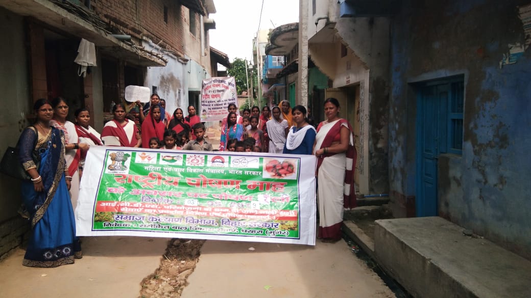 धरहरा :कुपोषण मुक्त समाज बनाने को लेकर बाल विकास परियोजना धरहरा की सीडीपीओ गुंजन मोली के नेतृत्व में रैली निकाली गई ।धरहरा दक्षिण पंचायत के सभी आंगनबाड़ी सेविका सहायिका व बच्चे ने समाज को कुपोषण मुक्त स्वस्थ ओर मजबूत समाज बनाने के लिए सभी आंगनबाड़ी केंद्रों के पोषक क्षेत्रों मे घुम -घुम कर नारे लगा रहे थे कि पोष्टिक आहार व साफ पानी पीऐगे कुपोषण को भगाऐगे ,हर धर पोषण देश हो रोशन ,सीडीपीओ ने ग्रामीण व पोषक क्षेत्र के लाभुको को कुपोषण से वचाव हेतु सरकार द्वारा चलाई जा रही अति महत्वाकांक्षी योजना से लाभ लेने के लिए महिलाओं को जागरूक किया ताकि स्वस्थ व मजबूत समाज बनाया जा सके ।इस मोके पर बाल विकास परियोजना की पयॅवेक्षिका करूणा कुमारी, सेविका वंदना सिंह, रीता कुमारी सहित सेविका सहायिका हर घर पोषण देश रोशन का नारा लगाते हुए लोगों को जागरूक किया ।