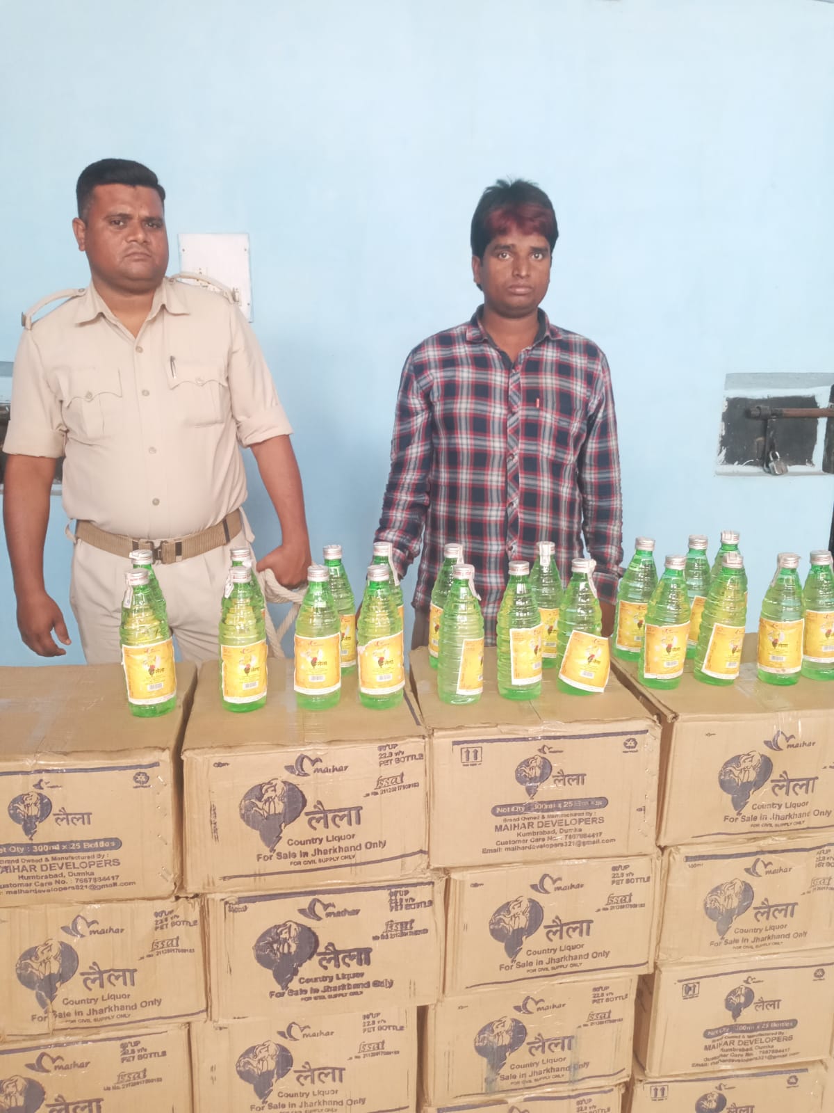 शुक्रवार को देर रात गश्ती के दौरान मुफस्सिल थाना द्वारा भारी मात्रा में देसी शराब के साथ एक मलढोबा टेंपो एवं एक तस्कर गिरफ्तार हुए बता दें कि शुक्रवार को देर रात मुफस्सिल थाना अध्यक्ष राकेश कुमार सिन्हा के नेतृत्व में बांक के पास गस्ती की जा रही थी तभी शक के आधार पर एक मलढोबा टैंपू का जांच किया गया जांच के दौरान भारी मात्रा में शराब बरामद की गई जो लगभग 1220 बोतल बताया गया शराब के साथ शराब तस्कर मनियारचक निवासी पहाड़ी मंडल को गिरफ्तार कर आगे की कार्रवाई की जा रही है।