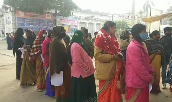 बुधवार को सदर अस्पताल के मेन गेट पर कोविड-19 कराने हेतु महिलाओं की लंबी कतार लगी दिखी वहीं स्वास्थ्य कर्मी द्वारा बताया गया कि सिविल सर्जन के निर्देशानुसार मरीजों की सुविधा को देखते हुए यहां पर जांच किया जा रहा है। ताकि लोग जांच के बाद डॉक्टरों से दिखाने में किसी प्रकार की कोई परेशानी ना हो इसी को देखते हुए सदर अस्पताल के परिसर में कोविड-19 जांच किया जा रहा है।