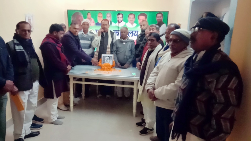 आज दिनाँक 2 फरवरी 2022 को मुंगेर जिला राजद में जिला अध्यक्ष डॉ देवकीनंदन सिंह जी के नेतृत्व में महान समाजवादी नेता बिहार लेलिन के नाम से मशहूर शाहिद जगदेव बाबू की 100 वीं जयंती समारोह श्रद्धा पूर्वक मनाया गया। सर्व प्रथम श्रधे जगदेव बाबू के चित्र पर माल्यालार्पन एवँ पुष्प अर्पित कर उनको सादर नमन किया गया। पुष्पांजली के उपरांत जयंती समारोह को सम्बोधित करते हुए राजद जिला अध्यक्ष डॉ देवकीनंदन सिंह ने कहा कि शाहिद जगदेव बाबू का जन्म आज हीं के दिन 1922 को जहानाबाद में हुआ है उनकी शिक्षा दीक्षा बिहार में हीं हुआ था वे साहित्य एवँ अर्थशास्त्र में पोस्ट ग्रेजुएट थे साथ हीं साथ लिटलेचर को भी अपने जीवन मे ढाल लिए थे। उन्होंने पिछड़ों और शोषितों की सामाजिक,आर्थिक एवँ राजनीति व सत्ता में भागीदारी के लिए लंबी लड़ाई व संघर्ष किये। उनका कहना था, *सौ में नब्बे शोषित है और नब्बे भाग हमारा है* *धन और धरती राजपाट में हमलोगों को भागीदारी सुनिश्चित करो* उनका सपना था कि बिहार में ऐसी सरकार बने जो सामाजिक के साथ साथ आर्थिक लोकतंत्र को मजबूत करे। पिछड़ों को उचित भागीदारी दिलाने के लिए वे बिहार के पहली गैरकांग्रेसी सरकार जिसमे मुख्यमंत्री महामाया प्रसाद एवँ उपमुख्यमंत्री कर्पूरी ठाकुर जी थे कि खिलाफ भी मोर्चा खोल दिए थे।क्योंकि इस सरकार में मात्र 20 % पिछड़ों को ही मंत्रिमंडल में जगह मिली थी। तब जाकर जगदेव बाबू ने सोशलिस्ट पार्टी के 35 mla को तोड़कर कांग्रेस के समर्थन से बी पी मंडल जी के नेतृत्व में नई सरकार का गठन करवाये और बीपी मंडल जी ने जगदेव बाबू के विचारों एवं उनके मूल्यों को तत्कालीन सरकार के माध्यम से आगे बढ़ाने का काम किया। तब से आज तक जो बिहार में सामाजिक, समावेशी एवँ आर्थिक रूप से पिछड़ो वंचितों को सत्ता में भागीदारी की नींव परी है उनके विचारों पर हमारी पार्टी एवँ हमारे नेता आदरणीय लालू प्रसाद जी आगे बढ़ाते आयें हैं। उनके जीवन के विषय मे जितना कहेंगे वह कम पड़ेगा। इस अवसर पर राजद के वरीय नेता नरेश सिंह यादव,उपाध्यक्ष प्रो शब्बीर हसन,प्रो विनय सुमन ,संजय पासवान,राजद के वरीय नेता रामबालक यादव,युवा राजद के अध्यक्ष मो आसिम वसीम, गजेंद्र कु हिमांशु,रंजीत गुप्ता,मंटू यादव,अशर्फी यादव,जिला परिषद प्रतिनिधि हिमांशु कुमार,मो एजाजअहमद, विजय यादव,शैलेंद्र यादव,अशोक रजक, मो कौशर फैयाज,मो शकील,धनंजय तांती,विनोद कुमार सहित दर्जनों राजद नेता उपस्थित थे।