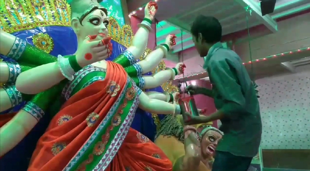 बरियारपुर प्रखंड के बड़ी दुर्गा पूजा समिति बरियारपुर बाजार के मंदिर प्रांगण में चैत्र नवरात्रि को लेकर माँ दुर्गा की प्रतिमा को अंतिम रूप में देने में जुटे कलाकार।जिसे देख स्थानीय लोगों में हर्ष व्याप्त।माँ की प्रतिमा को देखने को उत्सुक हैं ग्रामीण,परंतु पट खुलने के बाद।प्रतिमा का अनावरण काल अष्टमी के दिन होगा।नवरात्रि के दौरान मां दुर्गा के अलग-अलग स्वरूपों की नौ दिन पूजा की जाती है। हिंदू पंचांग के अनुसार, चैत्र नवरात्रि का आरंभ 13 अप्रैल को हुआ,जिसका समापन 22 अप्रैल को होगा।नवरात्रि के दौरान मां शैलपुत्री, ब्रह्मचारिणी, चंद्रघंटा, कुष्मांडा, स्कंदमाता, कात्यायनी, कालरात्रि, महागौरी और सिद्धिदात्री की पूजा की जाती है।विस्तार पूर्वक जानकारी के लिए क्लिक करें ऑडियो पर और सुनें पूरी खबर।