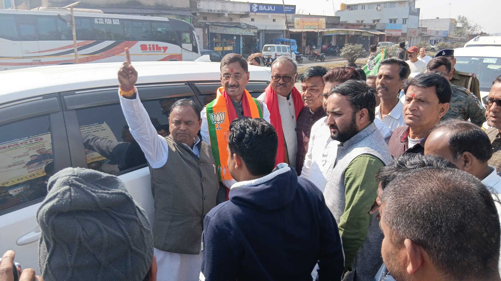 केन्द्रीय रक्षा राज्य मंत्री संजय सेठ का भाजपा कार्यकर्त्ताओं ने जैनामोड़ में किया भव्य स्वागत।