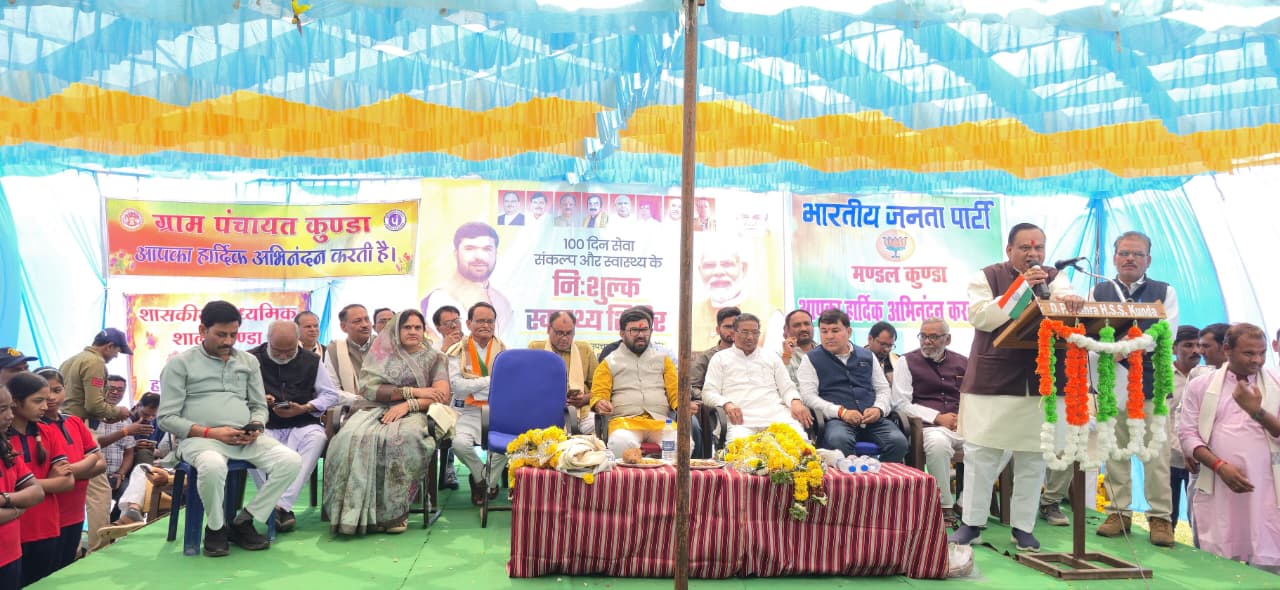 भाजपा पूर्व जिलाध्यक्ष विधायक पं रमेश दुबे जी ने भाजपा नेताओं व जनप्रतिनिधियों के साथ मान सांसद विवेक बंटी साहू जी के 100 दिन सेवा संकल्प अभियान के तहत आयोजित हो रहे स्वास्थ्य शिविर का भाजपा चांद मंडल अंतर्गत ग्राम गुमगांव में आयोजित निःशुल्क स्वास्थ्य शिविर का शुभारंभ किया ।