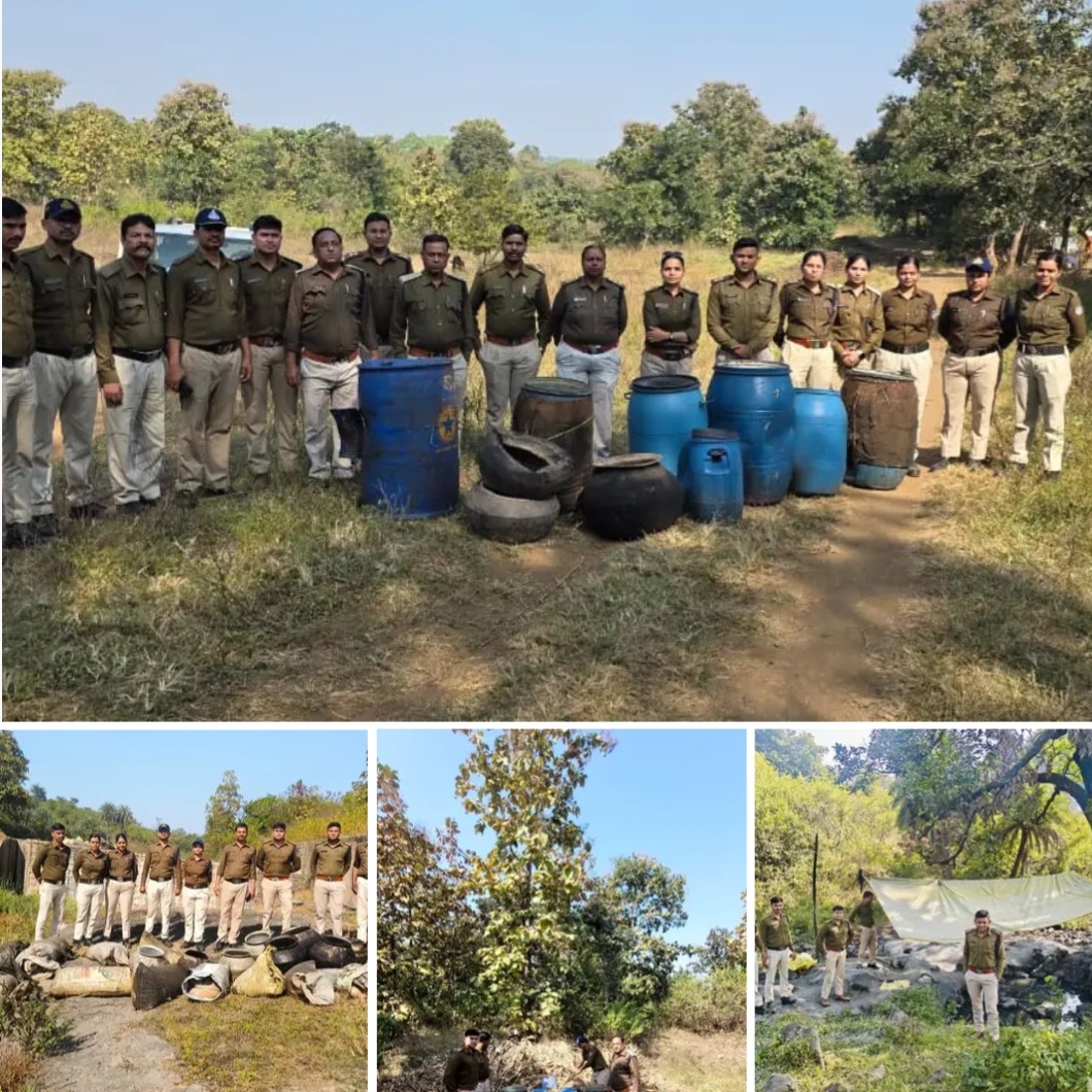 कलेक्टर श्री हरेंद्र नारायन के निर्देशानुसार नवागत सहायक आबकारी अधिकारी श्री बी.आर.वैद्य के मार्गदर्शन में ज़िले के आबकारी अमले द्वारा आज प्रात: के समय वृत्त प्रभारी श्री आकाश मेश्राम के नेतृत्व में गोसाईंढाना में जंगल के अंदर बहने वाले नाले के किनारे छुपाकर प्लास्टिक के विभिन्न ड्रमों और प्लास्टिक की पन्नियों में अनेक स्थानों पर छुपाकर रखे हुए महुआ लाहन को आबकारी विभाग के दल द्वारा ढूंढ़कर विधिवत नष्ट किया गया। इसी स्थान पर चालू भट्टी भी टीम को मिली जिसे तोड़ दिया गया।