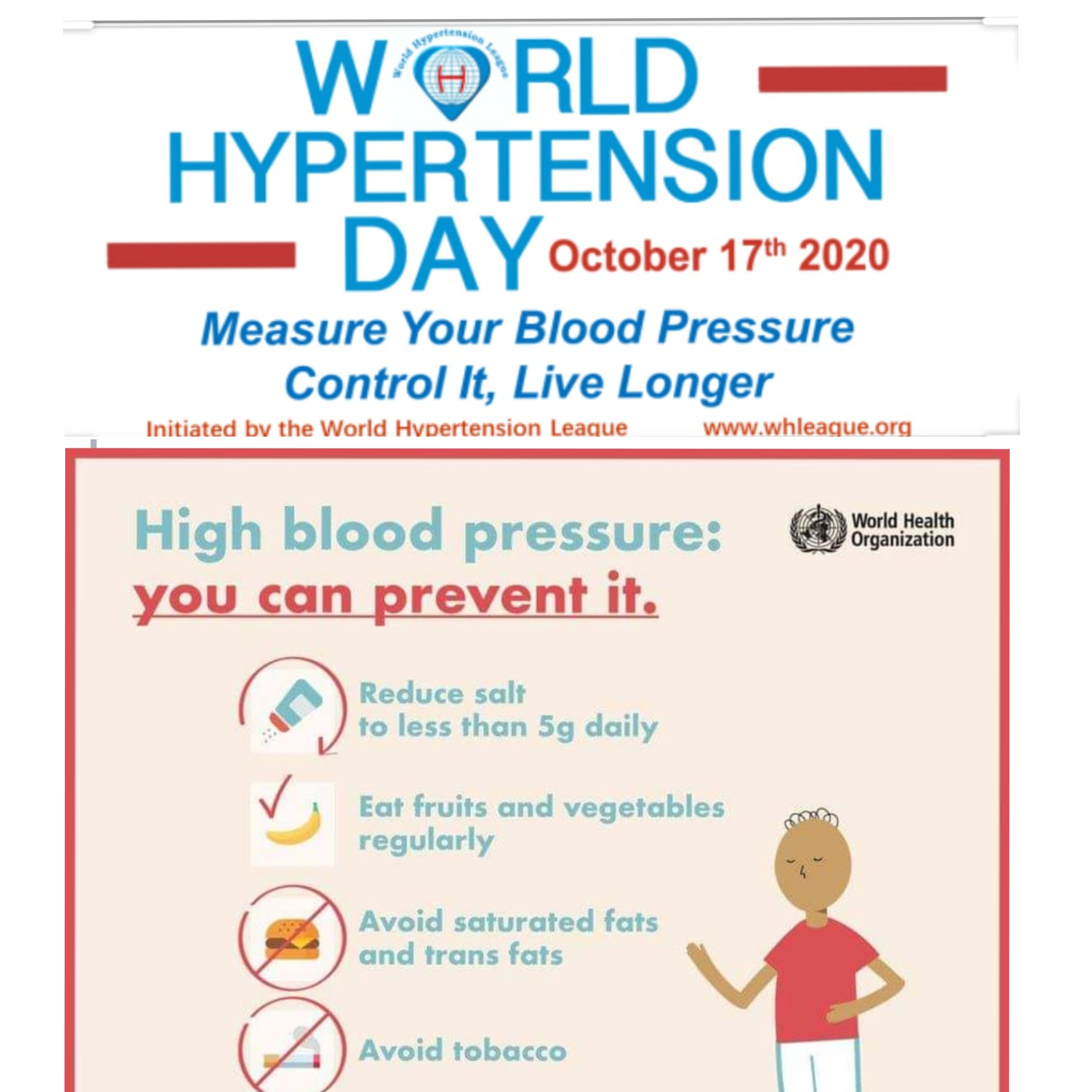 बिहार राज्य के जिला मुजफ्फरपुर से ज़ुल्फ़िकार मोबाइल वाणी के माध्यम से कहते है कि विश्व रक्तचाप दिवस वैसे तो प्रत्येक वर्ष 17 मई को मनाया जाता है, पर इस वर्ष कोरोना के कारण विश्व हाइपरटेंशन लीग इसे 17 अक्टूबर और डब्ल्यूएचओ इसे शुक्रवार को मना रहा है। इसे मनाने का मकसद सिर्फ एक है उच्च रक्तचाप के प्रति लोगों को जागरूक करना। ताकि इसके कारण होने वाले रोगों से छुटकारा मिल सके। यह बीमारी हमारे जीवन में साइलेंट किलर की तरह आता है। साथ में गंभीर रोग भी लाता है। इस रोग का कारण हमारी अनियमित दिनचर्या, जंक और फास्ट फूड को खाना है। वहीं नमक का ज्यादा प्रयोग भी उच्च रक्तचाप को बुलावा दे सकता है। इस वर्ष विश्व उच्च रक्तचाप का थीम है, ‘ अपने रक्तचाप को मापें, संतुलित रखें, लंबा जीएं ।‘