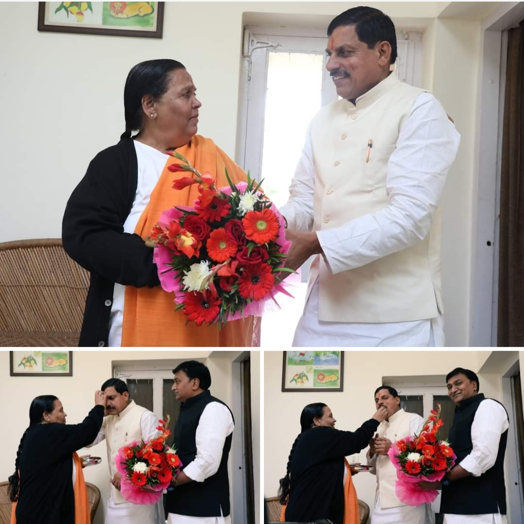 मध्य प्रदेश के नवनियुक्त मुख्यमंत्री डॉक्टर मोहन यादव ने पूर्व मुख्यमंत्री श्री उमा भारती के निवास पहुंचकर भेंट कर उनसे आशीर्वाद प्राप्त किया
