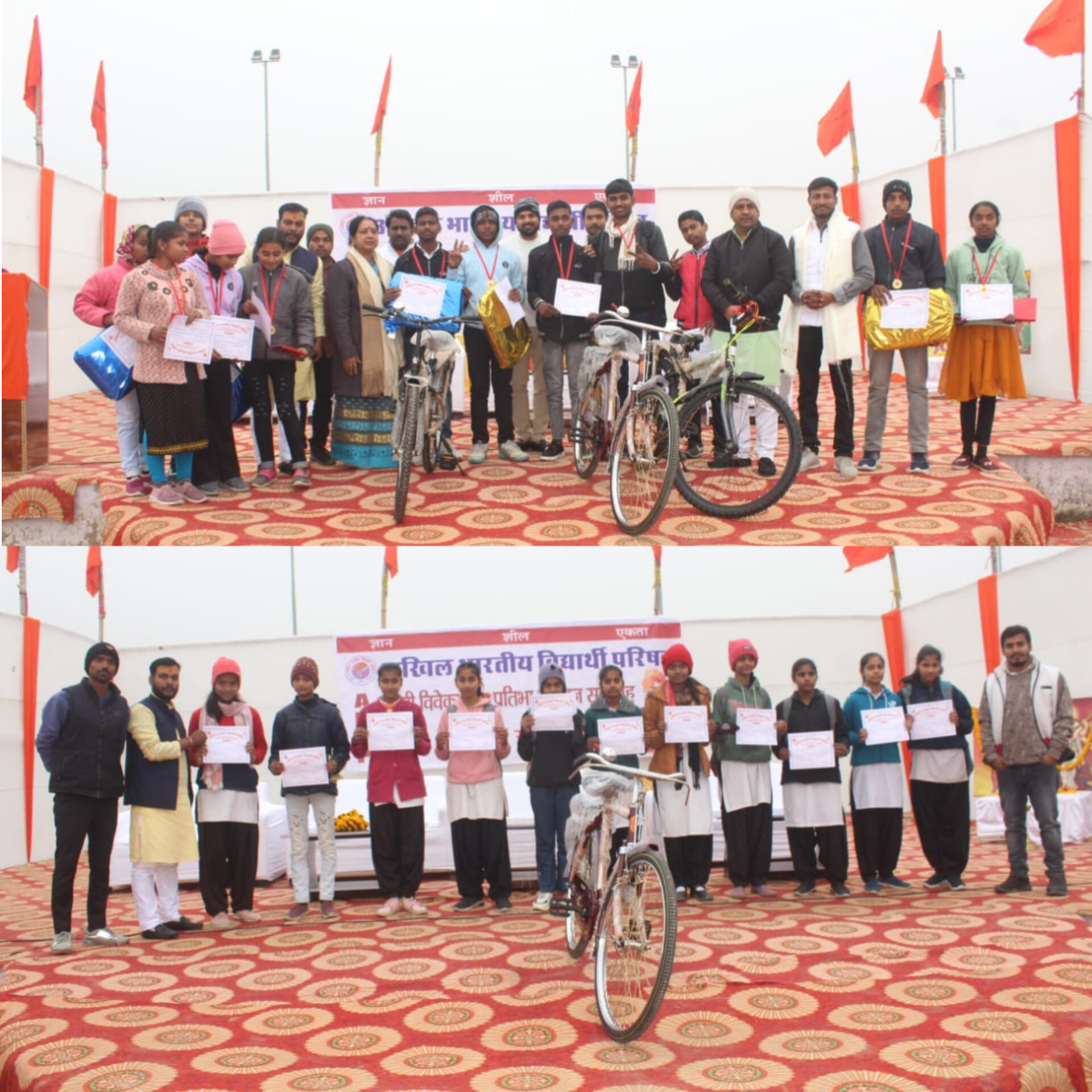 पीआर कॉलेज सोनपुर में स्वामी विवेकानन्द प्रतिभा खोज प्रतियोगिता के सफल विद्यार्थियों को किया गया सम्मानित *कंटक मार्ग पर चलकर ही सफलता प्राप्त हो सकता:--याज्ञवल्कय शुक्ला* सोनपुर । अखिल भारतीय विधार्थी परिषद सोनपुर इकाई द्वारा विगत सप्ताह हुए स्वामी विवेकानन्द प्रतिभा खोज प्रतियोगिता का परीक्षा परीणाम जारी किया गया तथा प्रतिभा सम्मान सामारोह कार्यक्रम बुधवार को पीआर कॉलेज में किया गया। कार्यक्रम का विधिवत उद्घाटन दीप प्रज्वलित कर अभाविप के राष्ट्रीय महामंत्री याज्ञवल्कय शुक्ला, राष्ट्रीय उपाध्यक्ष डा.पूनम सिंह , राष्ट्रीय कार्यकारिणी सदस्य रवि पांडे, भाजपा युवा मोर्चा के डा. आशुतोष कुमार ने संयुक्त रूप से किया । इस मौके पर याज्ञवल्क्य शुक्ला ने अपने संबोधन का शुरूआत भोजपूरी में का' हाल" बा ,ठंडा लगता के साथ किया पढा़ई को मजबुत करने के लिऐ प्रतियोगिता का आयोजन जरूरी है,इस प्रकार के स्पर्धा से ही प्रतिभा निखरता है,व व्यक्तित्व का विकास संभव है, हर बच्चा अपने मां बाप का ब्लैंक चेक की तरह होता है, इस प्रतियोगिता मे भाग लिऐ सभी विधार्थीयों,को सिर्फ यह प्रतियोगिता तक नहीं बल्कि अपने जीवन में आने वाले सभी प्रकार के चुनौतियों पार करना है,सफल होना है,तो कंटक मार्ग पर चलना होगा,जीवन का उदेश्यों का समझना होगा ,डर ,भय को अपने अंदर से बाहर निकालना खुद पर भरोसा करना ,आपका दिल किताब से लगे तभी जाकर आप अपना प्रतिभा एक सम्मान नहीं बल्कि असंख्यक सम्म्मान प्राप्त होगा।और आपके मां बाप ही ऐसे है,जहां आपको खुशियों का अनलिमटेड है। इस मौके पर डा.पूनम सिंह ने कहा स्वामी विवेकानंद जी के विचारों को जब हम अध्ययन करेंगे तब हमारे अंदर विवेकानंद जी का पूरा जीवन हमारे जीवन का भी सही दिशा देने का कार्य करेगा और हमें युवाओं के आदर्श होने के नाते विवेकानंद जी के विचारों को हमेशा स्मरण करते हुए अपना जीवन का कोई भी कार्य करना चाहिए । 67 वी बिहार लोक सेवा आयोग मे सफलता प्राप्त करने पर सोनपुर के विक्रमजीत सिंह को सम्मानित किया गया। प्रतियोगिता में ग्रुप वर्ग छः,सात,और आठ वर्ग में प्रथम स्थान अंश राज, द्वितीय सुधांशु कुमार ,तृतिय निखिल कुमार ग्रुप कक्षा नवम,दशम में प्रथम स्थान जूली कुमारी,द्वितीय गोलू कुमार,तृतीय ब्यूटी कुमारी, ग्रुप 11वीं कक्षा और 12 वीं कक्षा मे प्रथम स्थान विपिन कुमार,द्वितीय मधुसुदन कुमार,तृतीय काजल कुमारी ने प्राप्त किया। इस मौके पर राष्ट्रीय कार्यकारिणी सदस्य रवि पांडे , विश्वविद्यालय संगठन मंत्री पुरुषोत्तम कुमार, जिला संयोजक रविशंकर कुमार ,प्रदेश कार्यकारिणी सदस्य यशवंत कुमारआदि उपस्थित रहे।