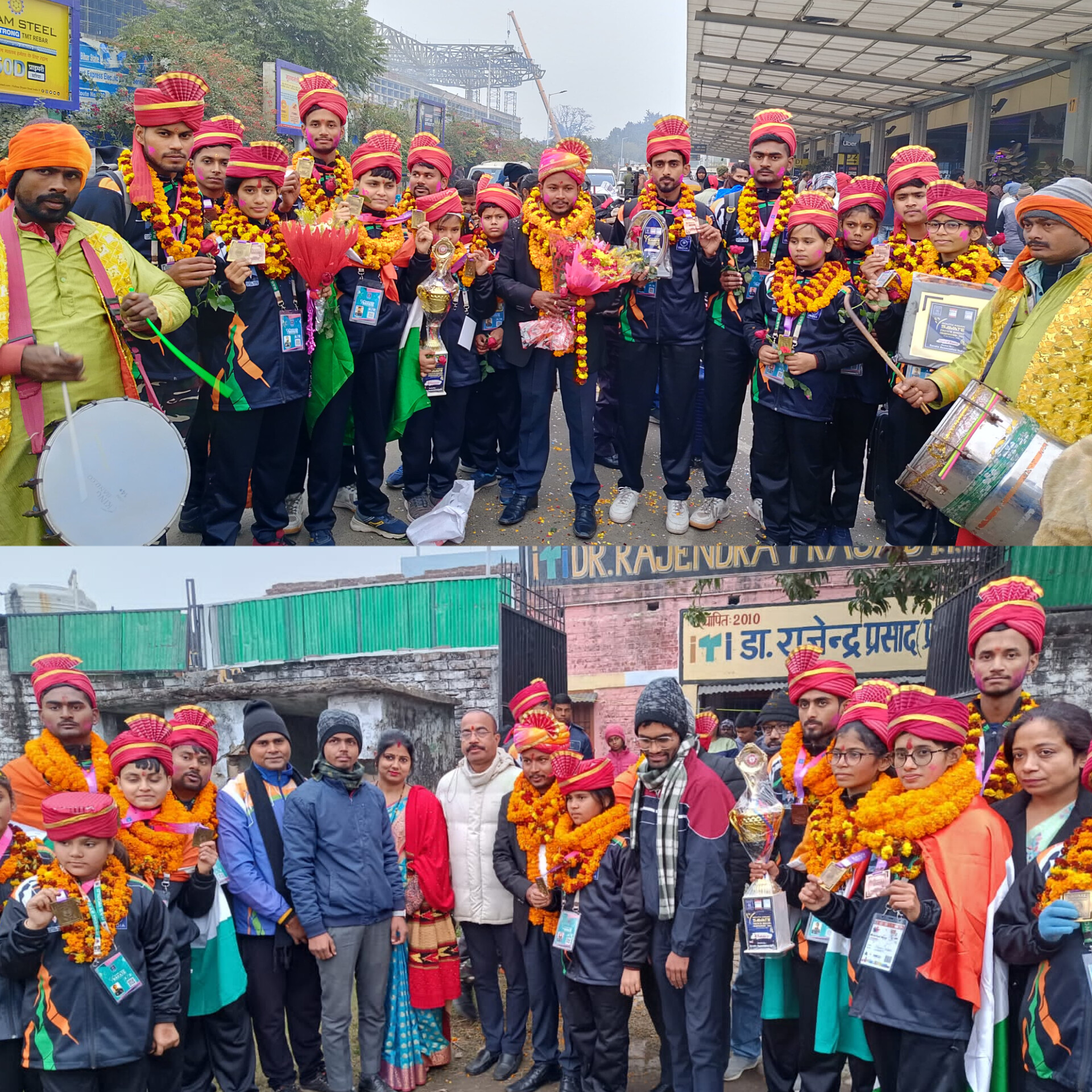 बिहार और केंद्र सरकार लगातार खिलाड़ियों को प्रोत्साहित करते हुए नेशनल विजेताओं को नौकरी भी दे रही है । 20 से 22 जनवरी तक चंडीगढ़ ( पंजाब) में आयोजित साउथ ऐशियन सवात् (फ्रेंचबॉक्सिंग) चैम्पियनशिप में भारतीय खिलाड़ियों ने जित हासिल कर बिहार का नाम रौशन किया । बतादे कि चंडीगढ़ में आयोजित होने वाली साउथ ऐशियन सवात् (फ्रेंचबॉक्सिंग) चैंपियनशिप के लिए बिहार से 15 सदस्यीय टीम गुरुवार को रवाना हुई थी । इनके साथ भारतीय टीम के कोच के तौर पर राष्ट्रीय सवात् संघ के द्वारा राज्य सवात संघ बिहार के सचिव शिहान ई राहुल श्रीवास्तव भी रवाना हुए थे । प्रतियोगिता में साउथ ऐशियन देश के भारत, नेपाल, श्रीलंका, बंगलादेश, आफगानिस्तान व भूटान के बॉक्सर भाग लिया था ।जिसमे बिहार के खेलाड़ीयो कुल 19 पदक जीत हासिल कर अपने नाम करते हुए बिहार ही नही बल्कि गाँव व जिले का नाम रौशन किया । जिसमें (9 गोल्ड, 5 सिल्वर व 5 ब्रांज मेडल) साथ ही इंडियन टीम के कोच शिहान ई० राहुल श्रीवास्तव को ऐशियन सवात् कॉन्फेडरेशन के सचिव के द्वारा विजेता ट्राफी के साथ बेस्ट कोच अवार्ड भी दिया गया। पटना ऐयरपोर्ट पर मंगलवार को पहुचने पर सभी खिलाड़ियों के गाजे बाजे के साथ स्वागत में राज्य सवात् संघ, बिहार के खिलाड़ी व पदाधिकारियों के साथ पूरा भीड खड़ी थी। गाजे बाजे के साथ दर्जनों वाहनों से खिलाड़ियों ने पटना एयरपोर्ट से जेपी सेतु सड़क मार्ग होते हुए भरपुरा गाँव में पहुँचने पर रंजीत श्रीवास्तव , यदुनंदन भगत,गणेश भगत,सुरेंद्र सिंह,शिवपूजन साह ,संजीत कुमार ,रितेश रंजन,सुनैना देवी, रूपेश रंजन ,साक्षी,आकांक्षा व सोनपुर में सुनील कुमार सिंह,सुबोध कुमार, संतोष कुमार, सरोज,आरती पुष्प सहित दर्जनों ग्रामीणों और नगर वासियों ने गर्मजोशी के साथ सभी खिलाड़ियों को स्वागत करते हुए उनके उज्जवल भविष्य की कामना की। *गोल्ड मेडलिस्ट* स्वीटी कुमारी 2 गोल्ड (असौत व कॉम्बैट), उपासना आनंद, तन्नू श्री, श्रृष्टी भारद्वाज, कुमारी अनन्या, अनुष्का अभिषेक, रोहित कुमार प्रजापति, हिमांशु राज *सिल्वर मेडलिस्ट* सुरज कुमार 2 सिल्वर (असौत व कॉम्बैट), नितेश कुमार, शिवानी, उपासना आनंद, (कंम्बैट), *ब्रांज मेडलिस्ट* नासिर फिरोज, काशिफ हुशैन, हिमांशु भगत, तन्नू श्री (कॉम्बैट) नितेश कुमार, (कॉम्बैट) इन सभी खिलाड़ियों के जितने के खुशी में राज्य सवात् संघ, बिहार के अध्यक्ष चंद्रमोहन प्रसाद सिंह, उपाध्यक्ष, सुनील कुमार व संयुक्त सचिव, आशिफ अनवर व कोषाध्यक्ष शिल्पी सोनम समेत सभी सदस्यों द्वारा शुभकामनाएं दी गई। व सभी खिलाड़ियों को पटना ऐयरपोर्ट पहुचने पर जोरदार स्वागत किया गया व पटना से मुजफ्फरपुर रास वर्ल्ड मार्शल आर्ट्स क्लब तक रोड शो: किया गया। पटना से जेपी सेतु सड़क मार्ग रास्ते में लग