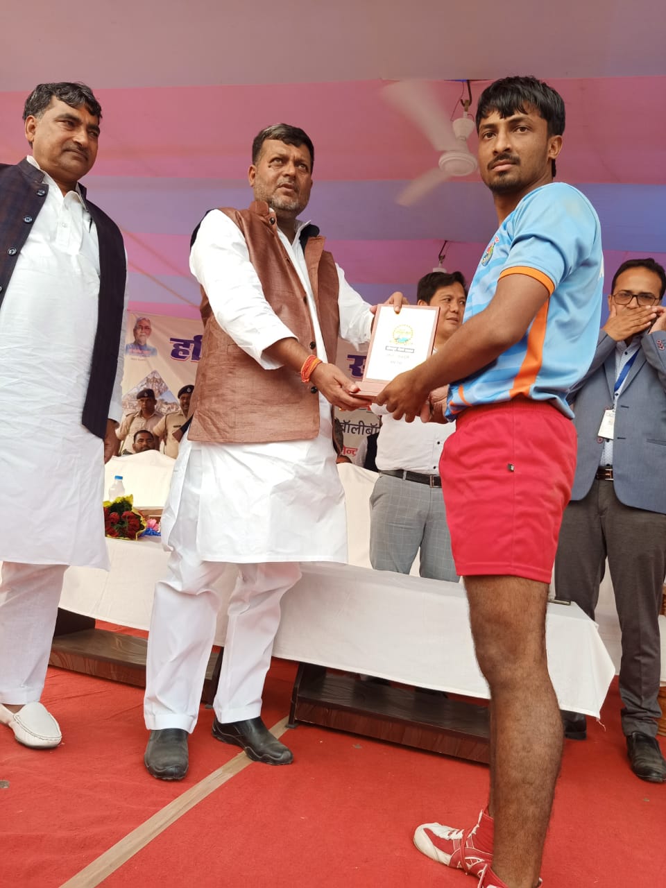 बिहार कबड्डी प्रतियोगिता के नेशनल में सोनपुर के लाल सूरज कुमार का हुआ चयन बिहार के 12 खिलाड़ी कर्नाटक के लिए हुआ रवाना सोनपुर । बिहार कबड्डी एसोसिएशन के द्वारा नेशनल में सूरज यादव के चयन होने के बाद घर के सदस्यों के साथ क्षेत्र के लोगों में खुशी की लहर दौड़ गई और लोगों ने खेलाड़ी सूरज को बधाई दी । बतादे कि सोनपुर प्रखंड अंतर्गत नयागांव थाना क्षेत्र के महमूदचक गांव निवासी रामबाबू राय के सुपुत्र सूरज यादव के घर में खुशी का लहर उस वक्त दौर गयी जब सूरज कुमार के मोबाइल पर फोन आया कि चंदन कुमार का सिलेक्शन बिहार कबड्डी एसोसिएशन के द्वारा नेशनल मे चयन हो गया है उन्हें कर्नाटक खेलने के लिए जाना है। सूरज यादव ने रविवार को कर्नाटक जाने के वक्त बताया कि 67 वां अंडर-19 कबड्डी प्रतियोगिता आयोजित किया जा रहा है। यह प्रतियोगिता भारत के कर्नाटक राज्य में खेला जाएगा । इस खेल में बिहार से मात्र 12 खिलाड़ियों का चयनित किया गया है जिसमें से सारण जिले से एकमात्र खिलाड़ी सूरज यादव का चयनित हुआ है। उन्होंने यह भी बताया कि गया में राज्य स्तरीय कबड्डी प्रतियोगिता हुआ था। जिसमें जीत हासिल करने के बाद मेरा चयन नेशनल में हुआ है। कर्नाटक में 67 वां अंडर 19 जो 23 से 27 जनवरी 24 के बीच नेशनल कबड्डी प्रतियोगिता का आयोजन होगा । जिसमें बिहार के 12 खिलाड़ी रविवार के कर्नाटक के लिए रवाना हो गए। यह खबर सुनते ही खेलाड़ी सूरज यादव के अलावा घर के सदस्यों के अलावा सगे संबंधियों व गाँव व क्षेत्र के लोगो मे मन प्रफुल्लित हो गया और उसके बाद उनकेशुभचिंतकों के द्वारा उनके फोन पर बधाई देने का ताता लग गया। सारण जिला कबड्डी संघ के समस्त ऑफिशियल गण सुरेश सिंह ,पंकज कश्यप ,दीपक कुमार सिंह ,संजय कुमार सिंह,सहित गोपालपुर सरपंच शंकर मालाकार ,गरीबो के मशीहा डॉ चंदन लाल मेहता, विष्नु तिवारी ,चंदन कुमार, संजीत कुमार सहित क्षेत्र के लोगों ने उनके उज्ज्वल भविष्य की कामना किया ।