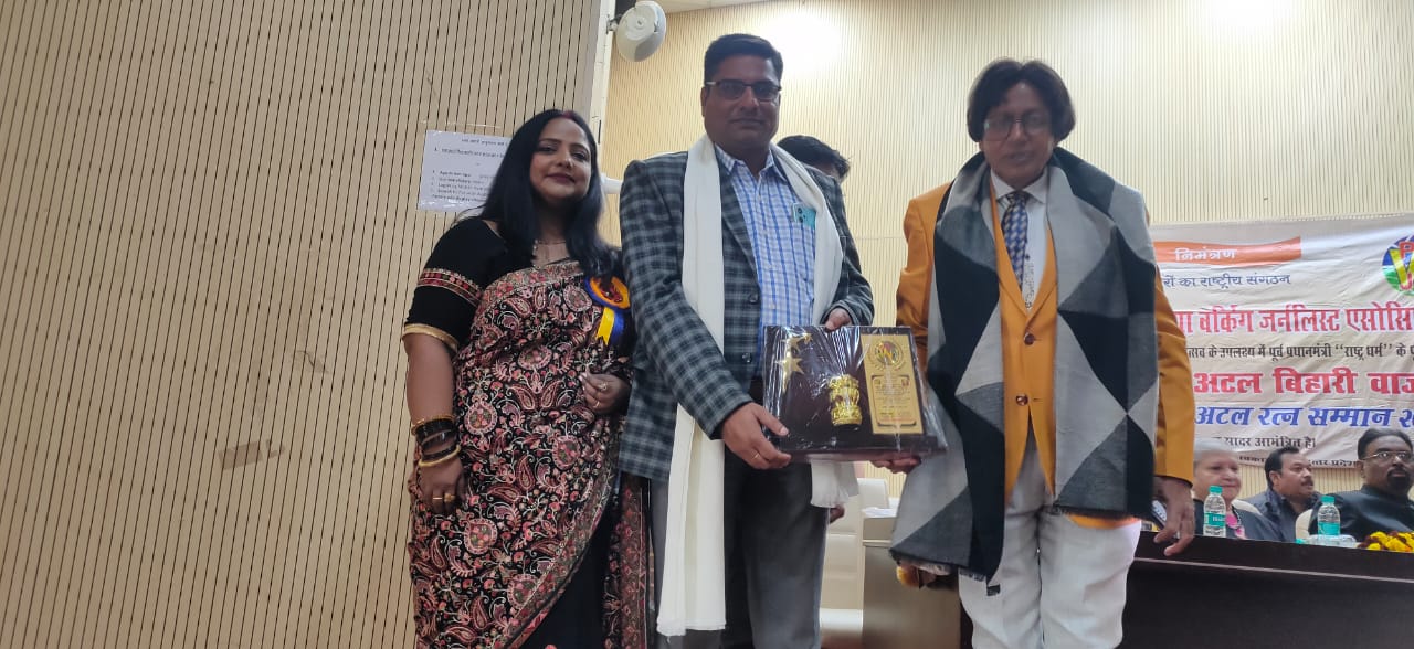 लखनऊ में भारत रत्न अटल सम्मान से सम्मानित हुए सोनपुर के गोविंद वल्लभ संगीत,साहित्य के क्षेत्र में अहम योगदान के लिए मिला गोविंद बल्लभ को सम्मान सोनपुर । उत्तर प्रदेश की राजधानी लखनऊ स्थित पंडित दीन दयाल उपाध्याय सूचना भवन में पिछले 25 दिसंबर को देश के पूर्व प्रधानमंत्री स्व .अटल बिहारी बाजपेई की 99 वीं जयंती पर देश की सुप्रसिद्ध संस्था प्रिंट मीडिया जर्नलिस्ट एसोसिएशन की ओर से भारत रत्न अटल सम्मान-2023 का आयोजन किया गया। जिसमें देश भर विभिन्न राज्यों से आए साहित्यकार,पत्रकार एवम समाजसेवियों को सम्मानित किया गया। इस मौके पर सारण जिलांतर्गत सोनपुर प्रखंड के भरपुरा गांव निवासी गोविंद वल्लभ को संगीत एवम पत्रकारिता के क्षेत्र में उत्कृष्ट कार्य करने के लिए एसोसिएशन की ओर से उत्तर प्रदेश के पूर्व कार्यवाहक मुख्यमंत्री सह पूर्व केंद्रीय मंत्री डॉ.अम्मार रिजवी,एसोसिएशन के चेयरमैन डॉ.सुल्तान साकिर हाशमी,राष्ट्रीय अध्यक्ष अब्दुल अजीज सिद्दीकी,राष्ट्रीय उपाध्यक्ष डॉ.रीमा सिन्हा ने संयुक्त रूप से प्रतीक चिन्ह एवम शॉल देकर समानित किया। सम्मानित होने के बाद लखनऊ से सोनपुर लौटने पर गोविंद वल्लभ ने शनिवार को बताया कि इतना बड़ा सम्मान पाकर खुद को काफी गौरवान्वित महसूस कर रहा हूं। सम्मानित करने के लिए उन्होंने एसोसिएशन के राष्ट्रीय अध्यक्ष अब्दुल अजीज सिद्दकी एवम राष्ट्रीय उपाध्यक्ष डॉ.रीमा सिन्हा के प्रति आभार जताया है। भारत रत्न अटल सम्मान मिलने पर सोनपुर के पत्रकार विश्वनाथ सिंह,अवध किशोर शर्मा,संजीत कुमार , चुन्नू सिंह ,सुनील यादव सहित अन्य पत्रकार ,साहित्यकार,संगीत प्रेमी एवम बुद्धिजीवियों ने बधाई दी है। गौरतलब है कि गोविंद वल्लभ पिछले दो दशक से संगीत एवम पत्रकारिता के क्षेत्र में अपनी अहम योगदान देते आ रहे है। इस वर्ष भी इन्होंने विश्व प्रसिद्ध हरिहर क्षेत्र सोनपुर मेला में पर्यटन विभाग के मुख्य मंच से कई दिन सांस्कृतिक कार्यक्रम की प्रस्तुति देकर दर्शकों का भरपूर मनोरंजन किया है। साथ ही सोनपुर मेला में सारण जिला प्रशासन की ओर से आयोजित कई सेमिनार एवम पैनल डिस्कशन का भी सफल संचालन किया। जिसका सारण जिलाधिकारी से लेकर जिलास्तरीय अन्य पदाधिकारियों ने मुक्त कंठ सराहना की थी।