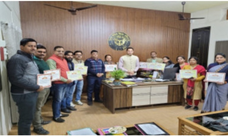 बेसिक शिक्षा विभाग द्वारा बालक बालिकाओं के विभिन्न प्रतियोगी परीक्षाओं में प्रतिभागिता के लिए ब्लॉक मेंटर्स को जिला बेसिक शिक्षा अधिकारी संतोष कुमार रॉय व वित्त एवं लेखाधिकारी रविंद्र सिंह ने सम्मानित किया।