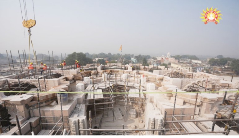 22 जनवरी को होने वाले प्राण-प्रतिष्ठा समारोह को देखते हुए मंदिर का निर्माण कार्य तेजी से कराया जा रहा है। भूतल का कार्य लगभग पूरा हो चुका है। अब प्रथम तल का भी कार्य शुरू हो गया है। इसको लेकर श्रीराम जन्मभूमि तीर्थ क्षेत्र ट्रस्ट ने सोमवार को प्रथम तल पर हो रहे निर्माण कुछ नई तस्वीरें जारी की हैं।