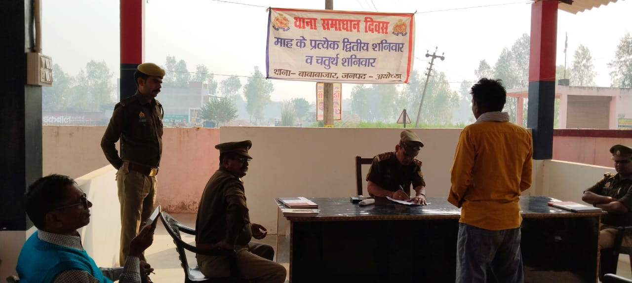 मवई अयोध्या।शनिवार को बाबा बाजार थाने में प्रभारी निरीक्षक राजेश सिंह की अध्यक्षता में समाधान दिवस का आयोजन किया गया।प्रभारी निरीक्षक ने बताया कि समाधान दिवस में पुलिस से सम्बन्धित पांच मामले तथा राजस्व से सम्बन्धित तीन मामले आये।एक मामले को मौके पर निस्तारित कर दिया गया।शेष मामलों को निस्तारित करने के लिये मौके पर टीम भेज दी गयी है।