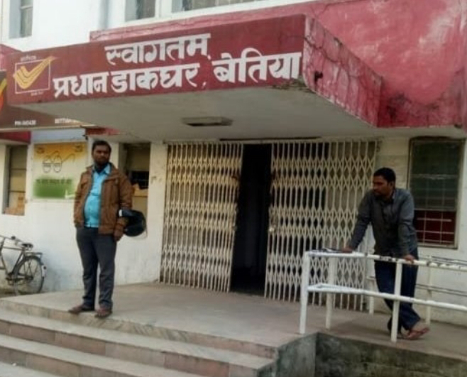 प0 चंपारण बेतिया जिला मोहम्मद मंजर आलम डाकघर में चोरी की घटना से छुब्ध होकर कर्मियों ने सी सी टीवी लगवाने की मांग।