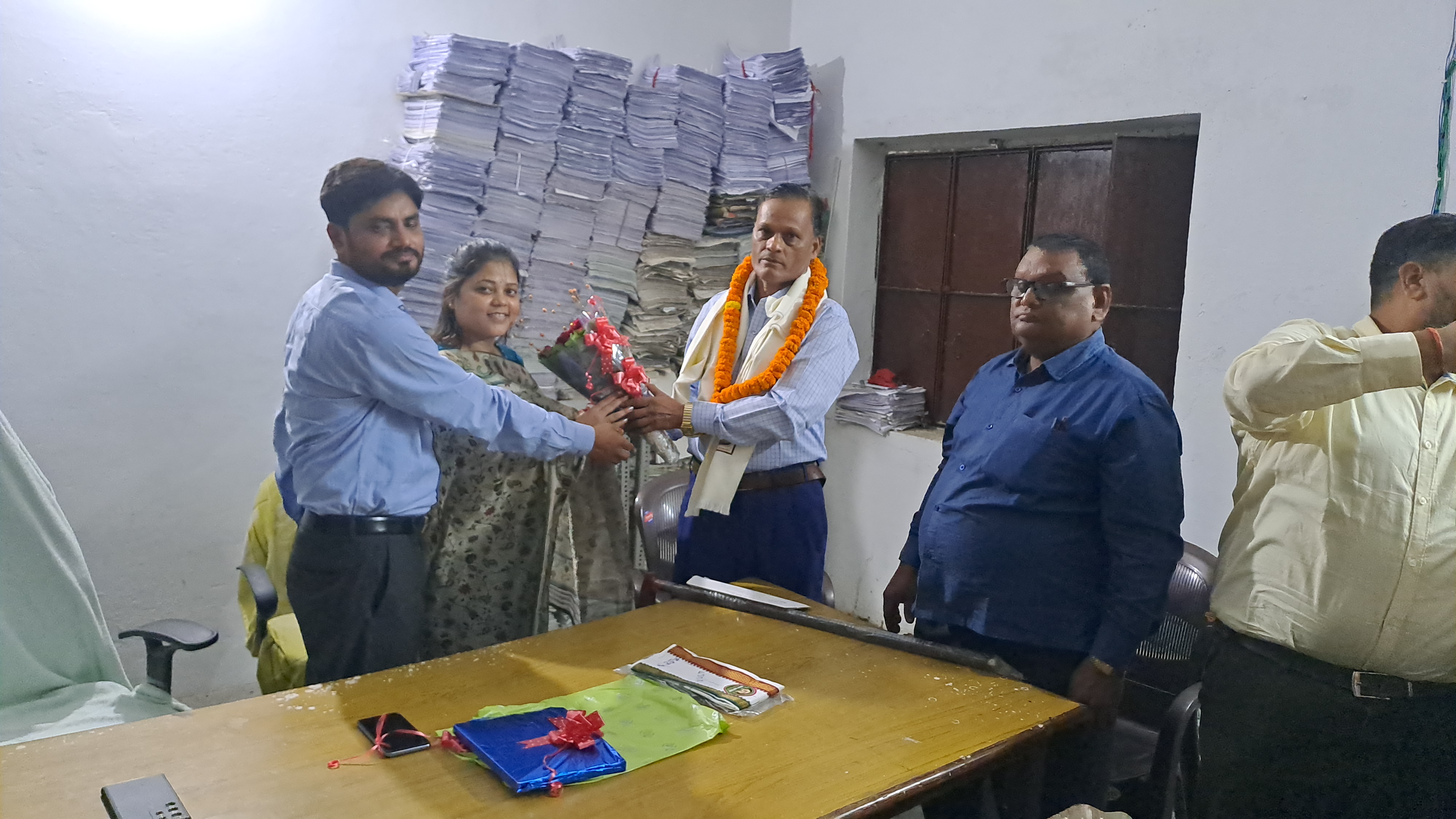 विद्यापतिनगर। अंचल कार्यालय में गुरुवार को अंचल नाजिर नागेंद्र बैठा के सेवानिवृत्त होने पर विदाई समारोह का आयोजन कर उन्हें भावभीनी विदाई दिया गया। इस विदाई समारोह की अध्यक्षता सीओ अजय कुमार ने तथा मंच का संचालन आरओ वागीशा प्रियदर्शी ने की। समारोह के दौरान सेवानिवृत्त नाजिर को अंगवस्त्र, फूलमाला पहना कर व बुके देकर सम्मानित किया गया। मौके पर सीओ अजय कुमार ने कहा कि किसी भी क्षेत्र में सरकारी कर्मी को एक दिन सेवानिवृत्त होना सुनिश्चित होता है। उन्होंने अंचल नाजिर नागेंद्र बैठा की प्रशंसा करते हुए कहा कि इनका कार्यकाल काफी सराहनीय रहा है। इनके सेवानिवृत्त होने से हम लोगों को इनकी कमी खलेगी। वहीं, सेवानिवृत्त अंचल नाजिर ने कहा कि मुझे विद्यापतिनगर अंचल पदाधिकारी व कर्मी की ओर से ढ़ेर सारा प्यार और स्नेह मिला है। जिसे मैं कभी भुला नहीं पाऊंगा। उन्होंने यह भी कहा कि नौकरी में हमने यह से बहुत कुछ सीखा हूँ, और आज विद्यापतिनगर के अंचल नाजिर के पद से सेवानिवृत्त हो रहा हूं। अपने चार वर्ष के कार्यकाल में मुझे यहां अपनापन लगने लगा। इस दौरान राजस्व अधिकारी वागीशा प्रियदर्शी ने कहा कि पदाधिकारियों का आना-जाना लगा रहता है। परंतु कुछ कर्मी ऐसे भी होते हैं जो अपना कार्य की बदौलत छाप छोड़ जाते हैं। जिसे लोग भूल नहीं पाते हैं। मौके पर आईटी सहायक गणेश पासवान, प्रधान लिपिक नथुनी दास, कुंदन कुमार, कुमार गौरव, सपना कुमारी, अंशु राम, अभिमन्यु कुमार, चंदन कुमार, अजित कुमार, वीरेंद्र कुमार, राकेश कुमार आदि उपस्थित थे।