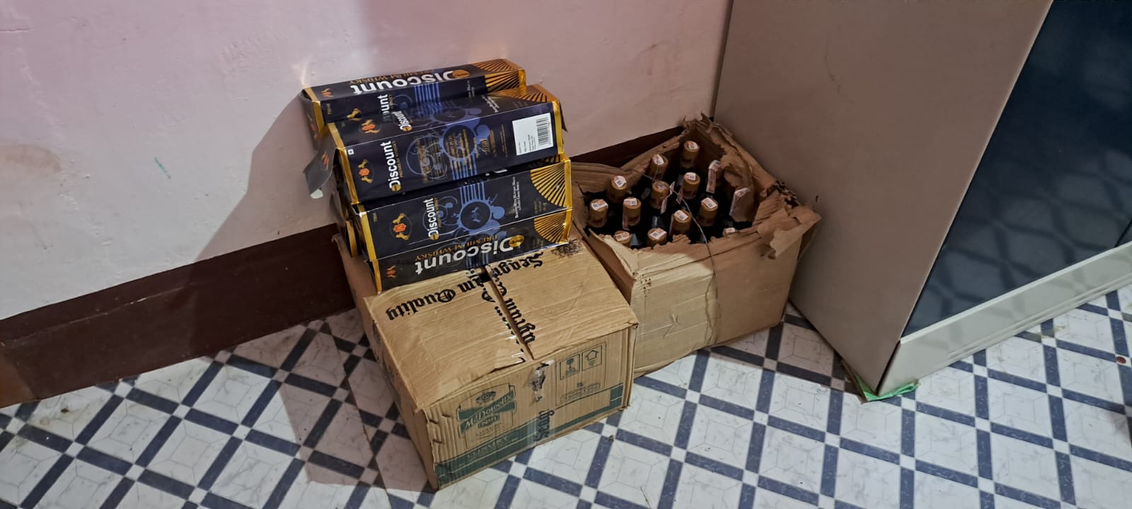 विद्यापतिनगर थाना क्षेत्र के शेरपुर पंचायत से पुलिस ने गुप्त सूचना के आधार पर सोमवार की रात छापेमारी कर 20 लीटर विदेशी शराब के साथ एक शराब कारोबारी को गिरफ्तार किया है। इस बाबत मिली जानकारी के अनुसार सोमवार की रात स्थानीय थाना की पुलिस ने शेरपुर पंचायत अंतर्गत छोटे लाल पंडित के घर से पश्चिम आम के बगीचे में एक झोपड़ी से छुपा कर रखे गए 750 एमएल का डिस्काउंट व्हिस्की चंडीगढ़ निर्मित 7 बोतल एवं 375 एमएल का मकडोवेल्स नम्बर वन के 41 बोतल विदेशी शराब बरामद किया है। इस दौरान पुलिस ने एक शराब कारोबारी को भी गिरफ्तार किया है। विस्तार पूर्वक जानकारी के लिए क्लिक करें ऑडियो पर और सुनें पूरी खबर।