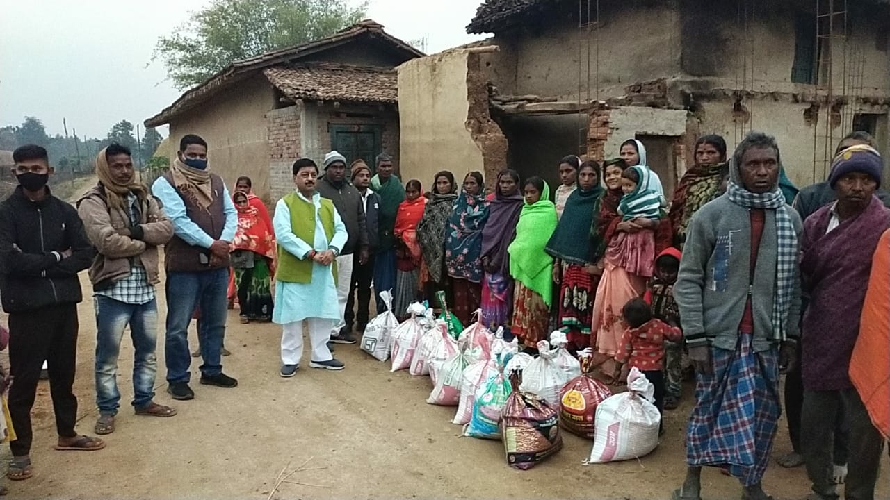 पूर्व सांसद ने हाथी द्वारा क्षतिग्रस्त गांव को दौरा किया, पीड़ित परिजनों को खाध्य सामग्री वितरण किया ।