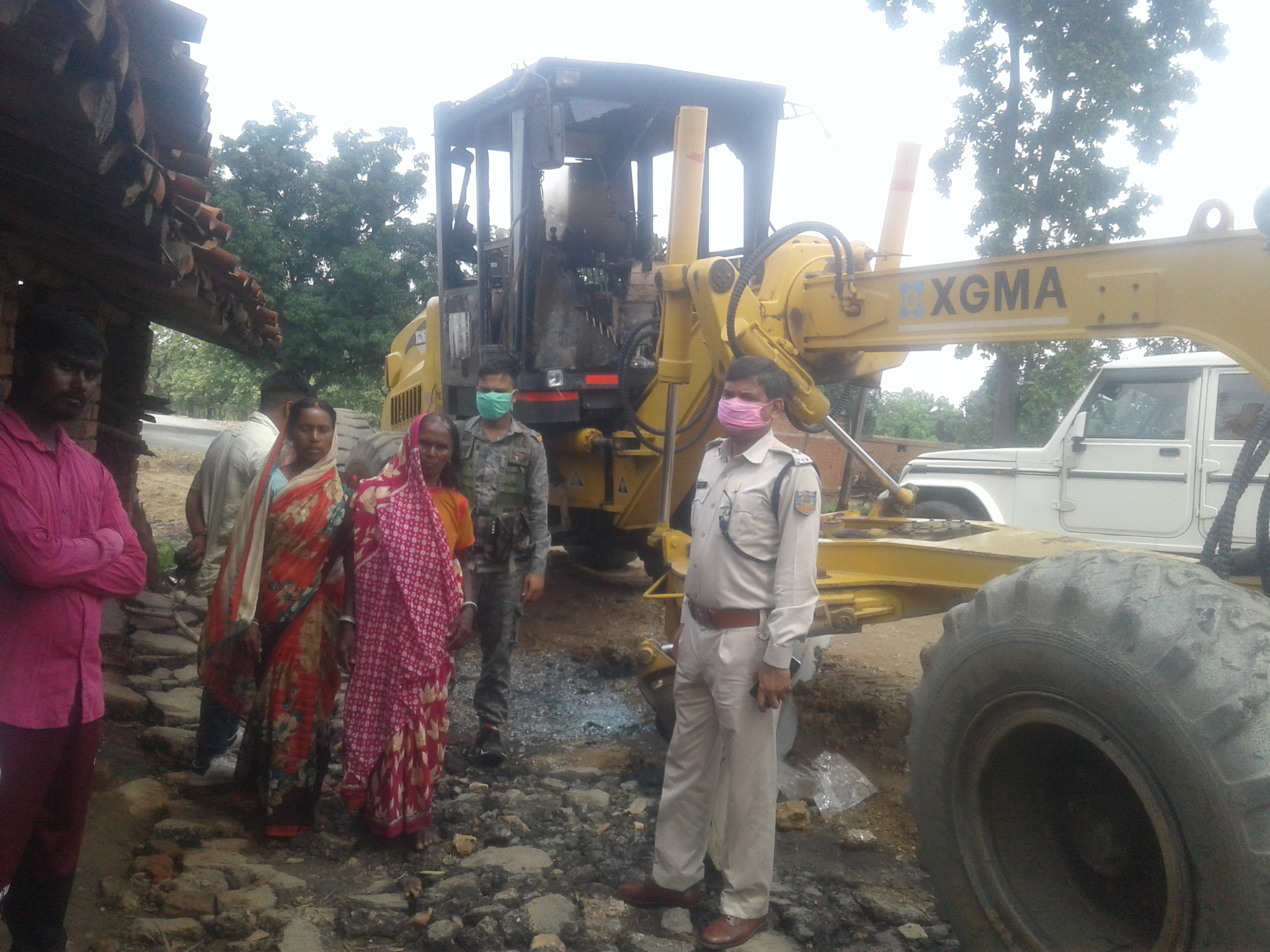 अपराधियों ने ग्रेडर मशीन को आग के हवाले किया