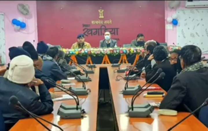 खगड़िया जिला के जिला कार्यालय में संयुक्त बैठक का आयोजन खगरिया जिला के जिला कार्यालय में संयुक्त बैठक का आयोजन किया गया है जिसमें खगड़िया जिला के तमाम विभागीय अधिकारियों को इस बैठक में आमंत्रित किया गया है तथा जिला भर में हो रही सभी लंबित कार्यो को जल्द से जल्द पारदर्शिता के साथ निष्पादन किए जाने की चर्चा जोर शोर से किया गया वहीं बैठक में मौजूद खगड़िया जिला के जिला अधिकारी आलोक रंजन घोष के द्वारा जिला भर में इतने बेकार किए जा रहे हैं उस कार्यों को सूचीबद्ध तरीके से और पारदर्शिता के साथ कार्य करने का निर्देश जारी किए बैठक में मौजूद खगड़िया जिला के पुलिस कप्तान अमितेश कुमार के द्वारा विभागीय अधिकारी को भी जल्द से जल्द पारदर्शिता के साथ कार्यों का निष्पादन करने का भी निर्देश दिए खगरिया मोबाइल बानी से रविंद्र कुमार धन्यवाद