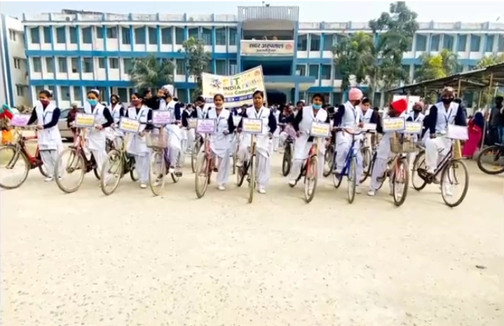 खगड़िया जिला के सदर अस्पताल में कुष्ठ निवारण संबंधित दिलाई गई शपथ और साइक्लोन का किया गया आयोजन